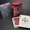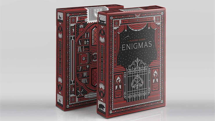 Les mêmes cartes et puzzles que les ENIGMAS bleues, mais avec un tout nouveau schéma de couleurs et dans une boîte à rabat magnifiquement conçue, avec du papier vélin de première qualité, de l’encre Pantone, une feuille d’argent, une couche supplémentaire de gaufrage et une découpe très spéciale révélant une partie du dessin du dos des cartes à jouer.