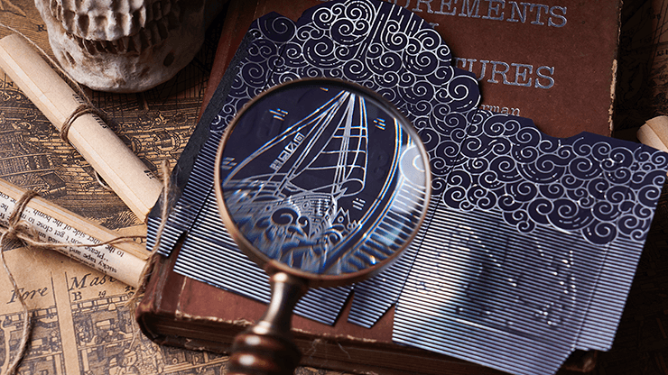 Sirocco Modern Edition, avec ses lignes nettes, sa composition méticuleuse et ses sirènes gardiennes, n’est pas seulement une ? »uvre d’art, mais aussi un témoignage d’un style de vie et d’une expérience - même si, soyons clairs, c’est certainement une ? »uvre d’art. Avec ses feuilles dorées et argentées, son gaufrage complexe et son impression recto-verso, le tout soigneusement planifié et estampillé sur un papier « peau de beauté » bleu royal mat, c’est un plaisir que les Riffle Shuffle s’efforcent de rendre accessible à tous.