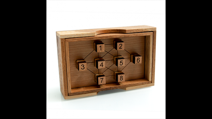 Le but est de disposer les chevilles (numéros 1 à 8) de manière à ce qu’aucun numéro consécutif ne touche une ligne de connexion. Par exemple, le numéro 1 ne peut pas être relié au numéro 2 ; le numéro 2 ne peut pas être relié au numéro 3 ou 1 ; le numéro 5 ne peut pas être relié au numéro 4 ou 6 ; etc. C’est une énigme intrigante qui attire les gens. Il semble facile, mais dès que vous commencez à réarranger les pièces, la complexité de la tâche se révèle.