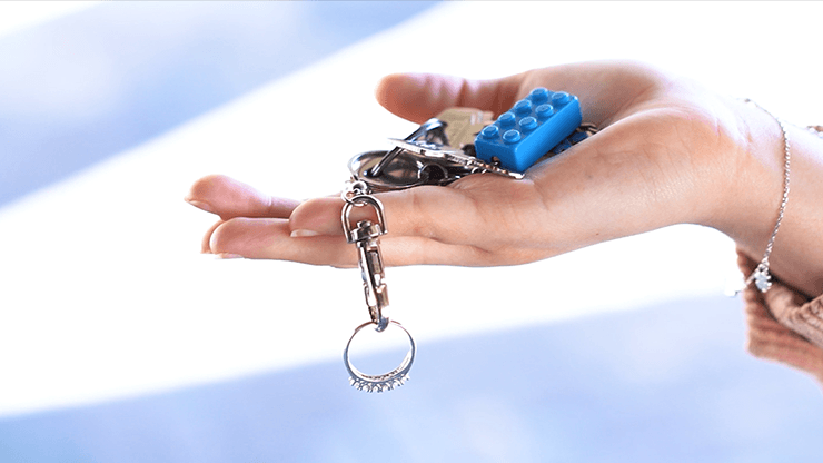 Imaginez ceci… Vous donnez les clés au spectateur ou les gardez sur la table depuis le début. Maintenant, vous prenez la bague du spectateur et la transformez en un cercle permanent dessiné sur la paume de votre main. Juste après, vous faites disparaître ce cercle de votre main et le faites voyager jusqu’aux clés dans la main du spectateur. L’anneau est maintenant là, attaché à l’anneau !