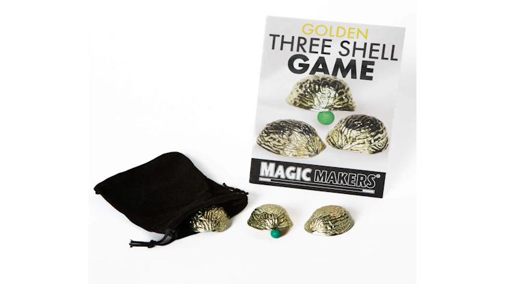 Réalisées dans un matériau de qualité, de couleur dorée, professionnelles, uniques, tout cela pour un effet puissant. Un classique de la magie, avec ici une allure classieuse et moderne. Le magicien présente trois coquilles dorées, place une petite balle sous l’une d’entre elles, les mélange, puis laisse le spectateur essayer de deviner où elle se trouve. Le spectateur perd à chaque fois. Au final, la balle disparaît et réapparaît dans un endroit impossible, ou pénètre magiquement le verre ! Ce tour, habituellement présentée en magie de rue, est ici présentée avec une nouvelle routine, et laissera un grand souvenir à vos spectateurs.