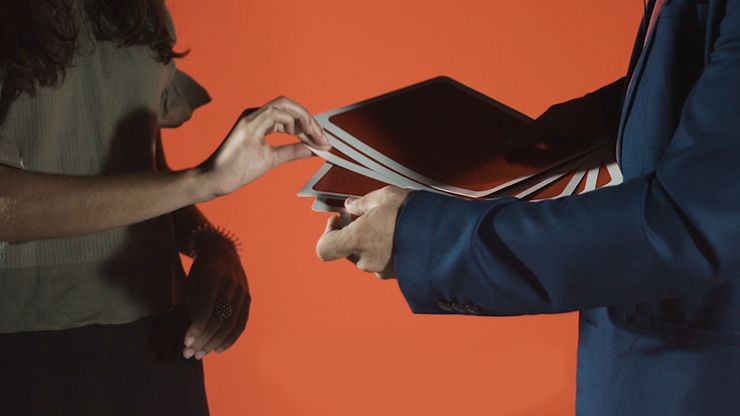 Le public peut voir que les cartes parmi lesquelles le spectateur doit choisir sa boisson sont des doublons de la prédiction qui se trouve dans le sac en papier. Le spectateur est maintenant invité à choisir n’importe quelle carte après que le magicien ait déplacé les cartes une par une du haut vers le bas du jeu. Le public rit car il peut voir que toutes les cartes sont identiques. Le spectateur appelle le nom de la carte choisie (Coke) et le public est choqué d’entendre que la carte choisie n’est PAS la même que la prédiction, qui est une bouteille de Fanta qui est à l’intérieur du sac en papier.