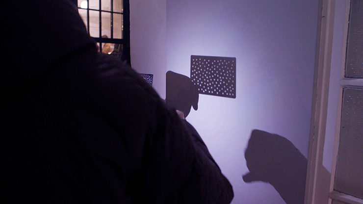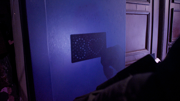Une fois que votre spectateur a choisi une carte, vous lui expliquez que la réponse à la découverte de sa carte se trouve dans le cosmos. Smartphone en main, vous éclairez une carte spécialement conçue à cet effet et percée de plusieurs trous, projetant ainsi une série d’étoiles aléatoires sur le mur. Cet ensemble désordonné d’étoiles s’aligne alors visuellement sur une révélation unique de la carte choisie.