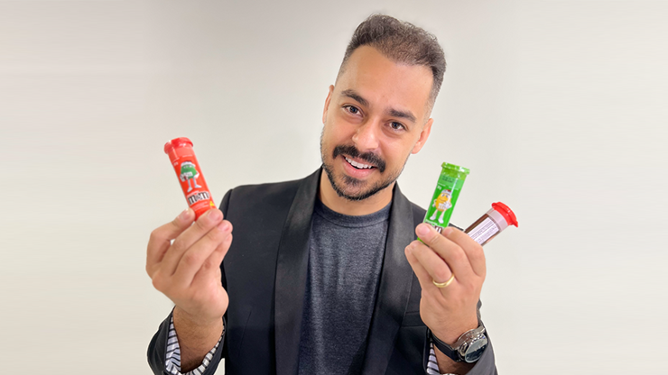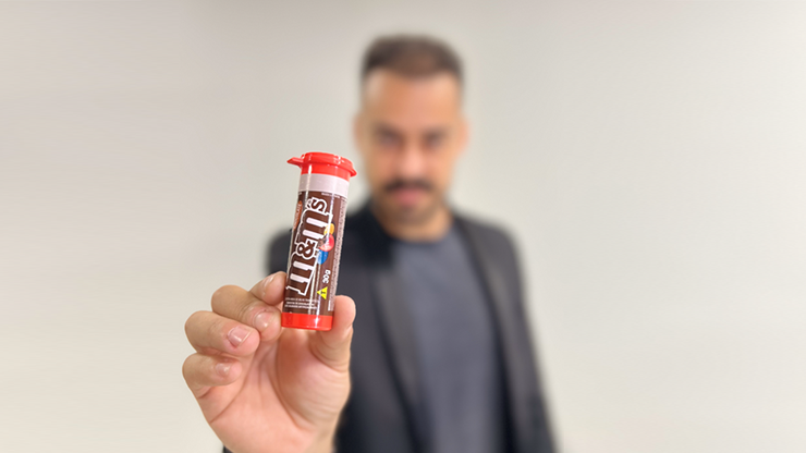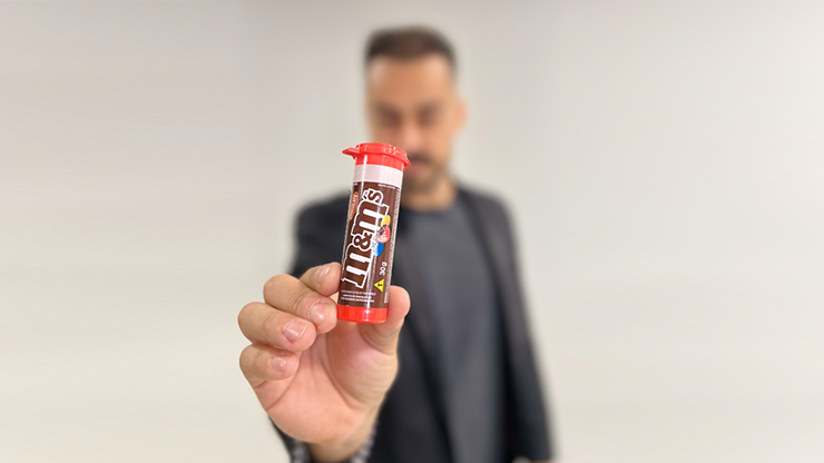 Empruntez la bague d’un spectateur. Elle disparaît de façon magique et mystérieuse… pour être retrouvée quelques instants plus tard à l’intérieur d’un tube de M&M’s scellé qui était à la vue de tous depuis tout ce temps ! Oui, le tube est ouvert par le spectateur ; le magicien ne touche pas au tube… et à l’intérieur des bonbons colorés se trouve leur propre bague.