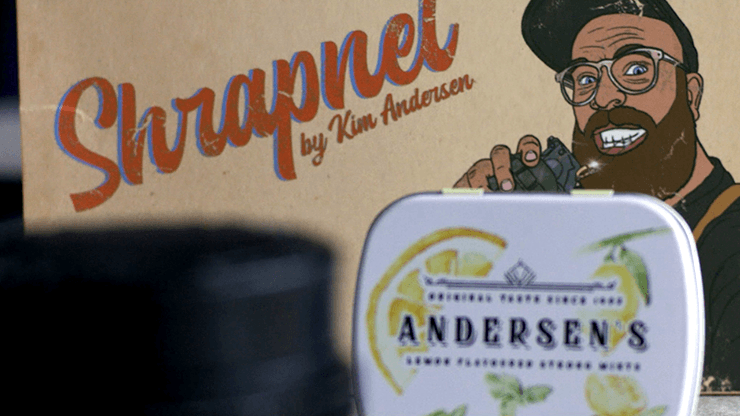 Le Shrapnel est le fruit de l’esprit créatif de Kim Andersen, magicien professionnel accompli. Reprenant la routine classique et éprouvée des épingles à nourrice, il a dépoussiéré les toiles d’araignée et l’a totalement réimaginée en un chef-d’oeuvre. Parfait pour le walkaround en situation de close-up.