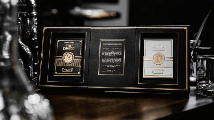 Ce coffret adopte un nouveau design structurel, inspiré par le toit ouvrant automatique des voitures de sport. Lorsque vous ouvrez la boîte cadeau, deux jeux de cartes portant le logo et le texte se séparent lentement, et les cartes à jouer s’échappent. La structure mécanique de la boîte cadeau n’est faite que de papier, qui est assemblé à la main avec 8 morceaux de carton. Cet incroyable emballage peut contenir deux jeux de cartes : Les cartes à jouer Midnight Black & Ice White. Le noir et le blanc représentent l’éternité et la pureté. L’utilisation de la couleur noire et blanche dans le design rendra le produit plus concis et artistique.