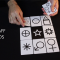 Les cartes folles : Vous présentez à votre spectateur 5 cartes avec un carré noir sur la face de chaque carte. Une par une les cartes vont se transformer magiquement pour faire apparaître les autres symboles ESP qui seront en couleur.