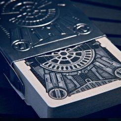 Ce jeu est unique en son genre. L’étui a l’apparence du métal et son toucher est d’une qualité incomparable ! Les cartes sont particulièrement résistantes : elles sont imprimées sur un papier 25% plus épais que les Bicycle Sentinels.