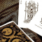 - Feuille d’or sur le bord et au dos des cartes.