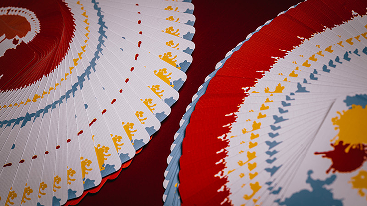 Le dos des cartes est entièrement personnalisé et conçu dans deux orientations. Il donne l’impression qu’il n’y a aucun bord blanc, mais une carte isolée dans le jeu ne sera pas visible, contrairement à d’autres jeux sans bordure.