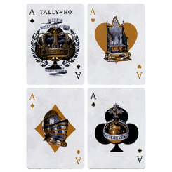 Les dessins sont de véritables oeuvres d’art et chaque carte rend honneur à la monarchie britannique des siècles derniers. Pour rester dans la tradition d’élégance de la gamme Tally-Ho, le dos de ces cartes est extrêmement détaillé. USPCC a donné son accord pour le jeu, nous sommes très heureux de vous le présenter.