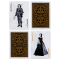 Chaque roi et dame a fait l’objet de recherches et d’un travail minutieux. Le dos est totalement décoré en gardant le thème habituel. Il illustre la couronne et fait allusion à la Guerre des Roses en Angleterre. Les portraits des figures sont détaillés et permettent quand même de jouer avec les cartes. Chaque figure du jeu représente une célébrité de la monarchie britannique, modèle de sophistication et d’élégance.