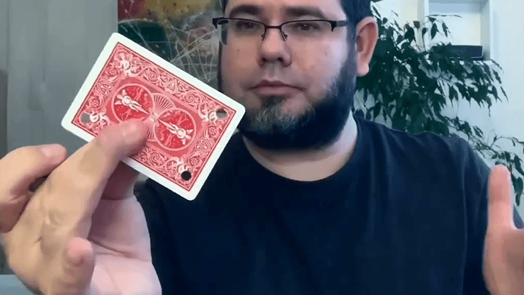 Tenez une carte du bout des doigts, carte choisie ou non… Un trou, deux trous, trois et même quatre trous apparaissent sur la carte. Déplacez-les un par un, faites-les sortir, sautez-les d’un endroit à l’autre, faites-les apparaître, faites-les disparaître, le tout sans aucun geste ou mouvement visible de votre part !