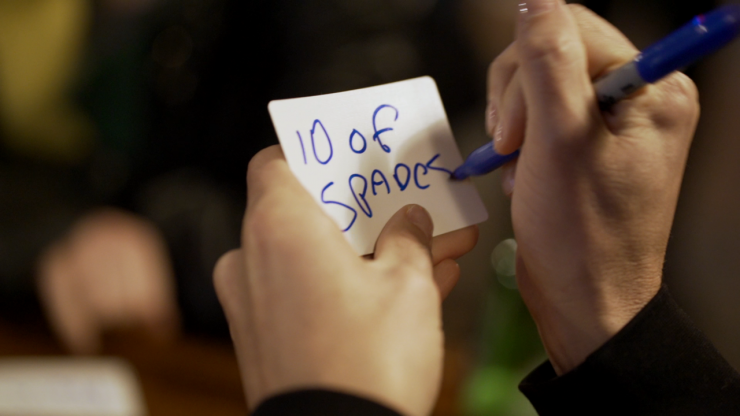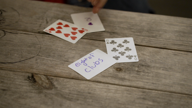 Les cartes sont examinées, mélangées, puis coupées en deux piles. Chaque personne choisit librement une carte de son tas, et les noms de ces cartes sont notés sur des feuilles de papier séparées afin qu’il n’y ait aucun doute quant à leur identité. Les cartes sont ensuite perdues dans les piles et mélangées de manière équitable. Dans ces conditions impossibles, vous coupez directement la carte du spectateur. Ensuite, le spectateur coupe où il veut. La carte qu’il trouve est la même que celle que vous avez notée au début du tour.
