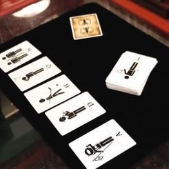 Le magicien présente un jeu de cartes un peu particulier car chaque carte représente un petit homme en pictogramme avec la première lettre qui décrit celui-ci (G pour Guitariste, C pour Clown, etc.). Vous pouvez présenter les cartes comme un jeu de société ou l’idée serait d’apprendre du vocabulaire ou encore des mots en anglais. Pour autant, ce simple jeu de société va vous permettre de réaliser un tour de magie incroyable. Le spectateur choisit librement une carte et la pose sur la table. Le magicien se laisse 5 chances pour retrouver la carte, mais échoue. Alors que tout semble raté, le magicien claque des doigts et retourne les 5 cartes qui forment alors le pictogramme du spectateur en grand !