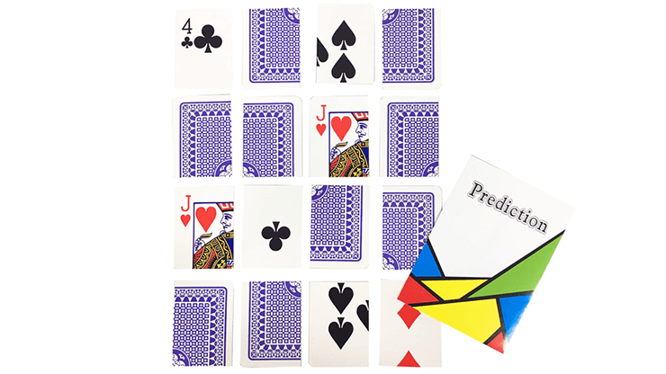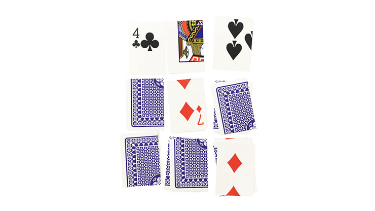 Vous disposez des morceaux de cartes sur la table face en bas et face en haut, le spectateur lui même choisit la façon de reformer l’ensemble des morceaux en un seul paquet, quand vous etalez les cartes 4 morceaux sont face en l’air, les 4 morceaux forme une carte, la carte que vous aviez prédit depuis le début. Vous refaites l’effet et le résultat sera d’autant plus étonnant…