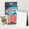 Un produit unique, indispensable pour tout cartomane voulant une magie visuelle et fraîche ! Donnez naissance à un dessin devant les yeux ébahis de vos spectateurs. L’effet est aussi simple que bluffant, vous présentez un petit carnet aux spectateurs, vous commencez à dessiner une carte à l’aide d’un marqueur tout en expliquant que celle ci sera votre prédiction. Vous faites ensuite choisir une carte à un spectateur. Quand vous reprenez votre carnet, vous finissez d’ajouter les dernières touches au dessin. Malheureusement, vous n’avez dessiné que le dos d’une carte, impossible donc pour le public de savoir si c’est sa carte ! Il vous suffira de claquer des doigts pour que le dessin prenne vie et se transforme en la carte du spectateur !