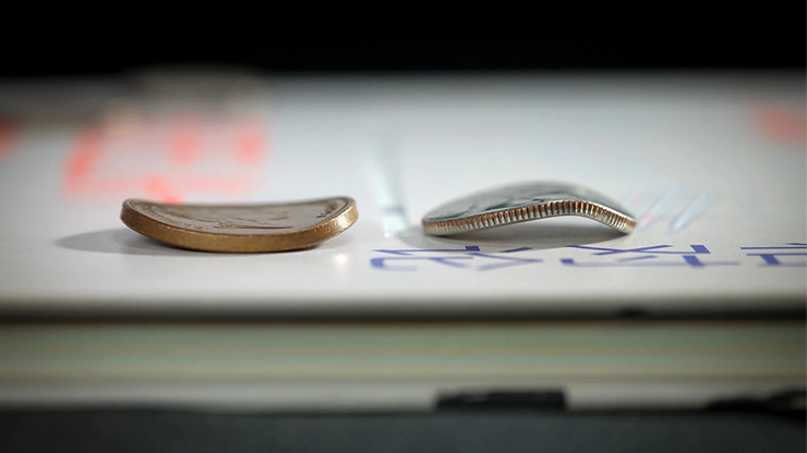 Avec Coinvexed, vous faites plier deux pièces signées ordinaires dans les mains de votre spectateur. Et ce n’est pas tout : ils voient la pièce se plier du bout de vos doigts.