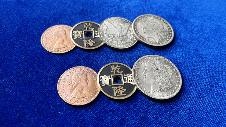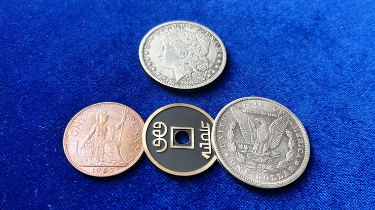 Vous tenez dans votre main quatre pièces différentes : deux pièces Morgan en argent, une pièce en cuivre et une pièce ancienne. Vous fermez votre paume et l’ouvrez à nouveau, il ne reste plus qu’une pièce Morgan en argent dans votre main. Les trois autres pièces ont disparu comme par enchantement !