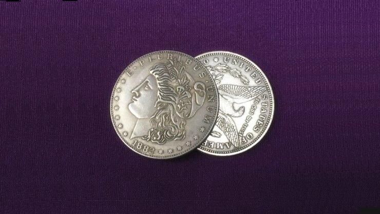 En un instant, une des pièces de monnaie disparaît ! le magicien prend alors la pièce de monnaie et la place sur la table. Il fait une passe avec sa main au-dessus de la pièce et celle-ci disparait aussi !