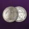 Le magicien montre deux pièces de monnaie, les place toutes les deux dans sa main.