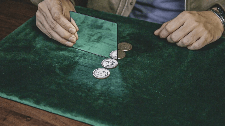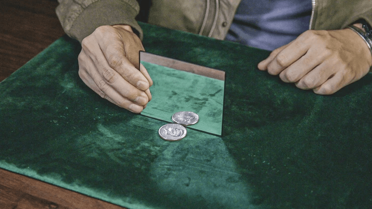 Twilight est une découverte inégalée en close-up qui transporte un innocent demi-dollar dans la zone crépusculaire de son propre reflet. Pendant qu’elle se trouve dans cette dimension, la pièce est visiblement condensée, dématérialisée, recréée et reproduite - jusqu’au spectaculaire final « Twilight » dans lequel les images reflétées par le miroir se transforment instantanément en quatre authentiques demi-dollars !