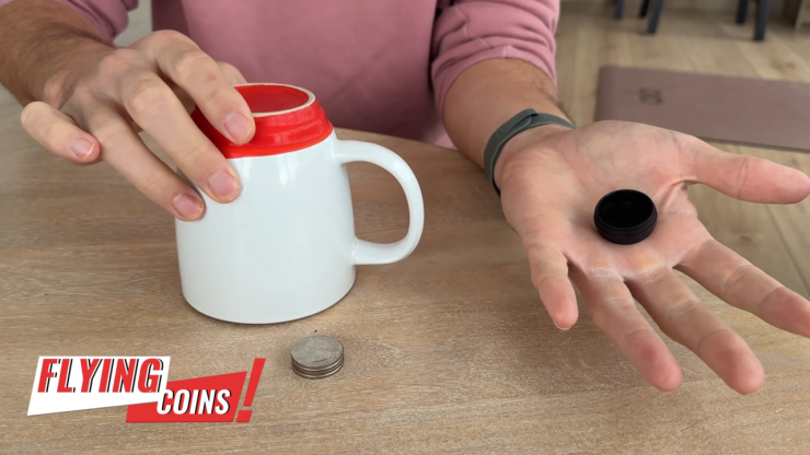 Flying Coins : des pièces de monnaie empruntées disparaissent sous un bouchon de bouteille et apparaissent dans votre poing fermé.