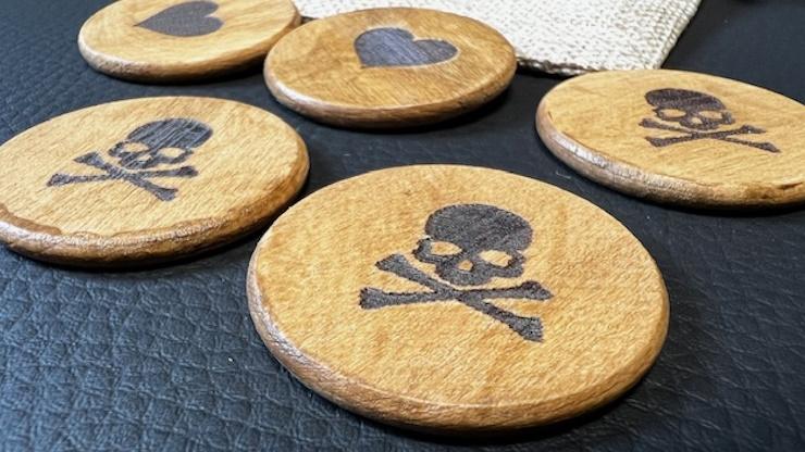 Les spectateurs auront la liberté totale de retourner autant de jetons qu’ils le souhaitent, de mélanger les cinq jetons et d’en dissimuler un avec leur main. Vous pourrez ensuite révéler si le jeton caché représente la vie ou la mort.