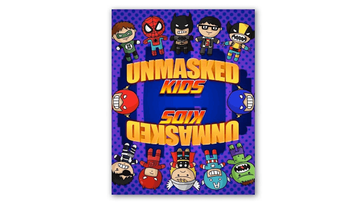 Avec cette version, vous obtiendrez un masque de changement double avec des super héros plus un livre de forçage double que vous pouvez également utiliser pour de nombreux effets différents comme des prédictions, des révélations… Les enfants vont devenir fous avec le nouveau Unmasked KIDS ! Maintenant vous n’avez pas besoin d’utiliser des cartes à jouer, et c’est un effet super visuel.