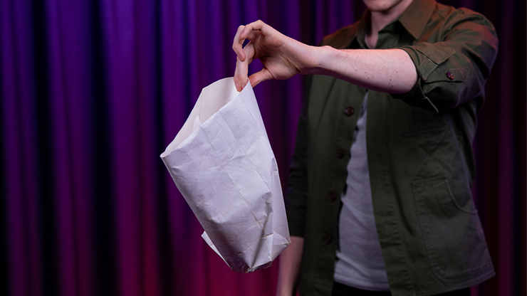 Un sac plié est retiré de votre poche et déplié devant le public. Vous leur montrez clairement qu’il est vide et vous pouvez même les laisser mettre leurs mains à l’intérieur. C’est sans doute un sac vide. Jusqu’à présent, c’est la même chose que la plupart des effets commercialisés.