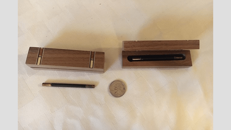 La mini baguette est une tige solide de 7.5cm avec un corps noir, des extrémités en laiton et une finition brillante. L’étui est en bois dur et comporte une bande de marqueterie sur le dessus à chaque extrémité. Cet accessoire est idéal pour la magie de proximité et de close-up.