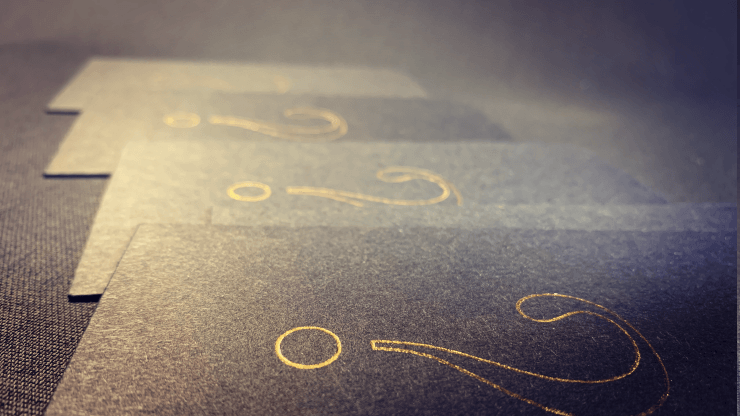 Magnifique enveloppe noire avec un point d’interrogation en dorure.