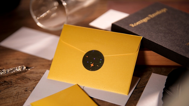 À ce moment, le magicien fixe l’enveloppe du regard, puis écrit quelque chose sur un morceau de papier.