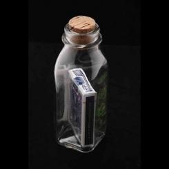 Ces oeuvres d’art sont réalisées à la main par le magicien de Vancouver Jamie D. Grant. Elles sont fabriquées à l’aide de bouteilles de lait non modifiées et de jeux de cartes Bicycle scellés, encore dans leur cellophane d’emballage.