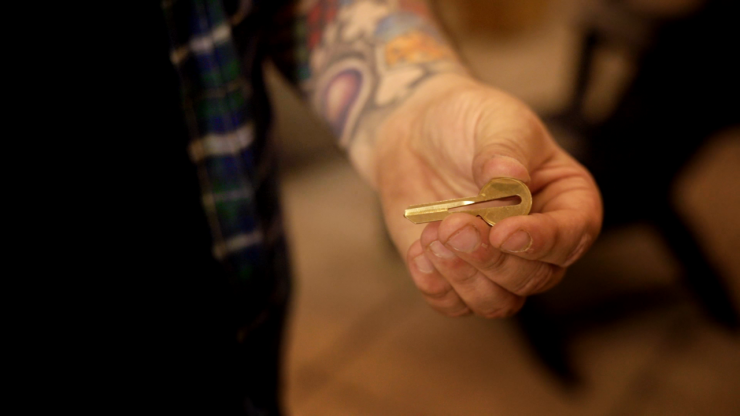 Vous présentez une clé en laiton et une pièce de monnaie. Vous dites ensuite à votre public que vous lui donnerez 100 dollars s’il parvient à faire passer la pièce par le trou de la clé. Après que les spectateurs ont essayé et se sont rendu compte que c’était impossible, le magicien leur propose de leur montrer comment faire. D’un simple frottement, le trou de la clé s’étire comme par magie pour devenir une fente de la taille d’une pièce de monnaie. Le magicien peut alors facilement faire tomber la pièce à travers la clé avant de rétrécir le trou à sa taille normale. Tout est examinable.