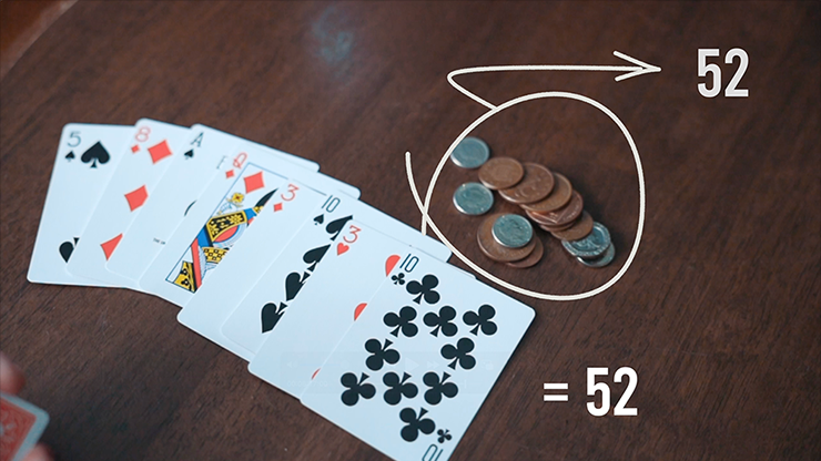 Vous ne touchez jamais le jeu. Dos tourné au public, les cartes sont mélangées autant de fois qu’ils le souhaitent. Le participant coupe ensuite autant de cartes qu’il veut et les étale face visible sur la table. Vous comptez à rebours : 3… 2… 1… vous vous retournez pendant moins d’une seconde et calculez instantanément la valeur totale de toutes les cartes face visible sur la table.