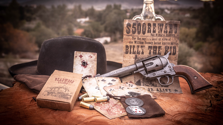 Le set est livré avec un petit sac de US Marshal à cordon. A l’intérieur du sac se trouve la pièce de Billy « The Kid » ainsi que TROIS pièces de révélation différentes vous permettant de réaliser l’effet plusieurs fois avec un résultat différent à chaque fois. Vous bénéficiez également d’un accès complet au didacticiel Dead Mans Hand qui comprend plusieurs routines de Mark Bennett et Matthew Wright. Vous y apprendrez plus sur l’histoire de la Dead Mans Hand et sur la vie de Billy « the Kid » que vous pourrez utiliser pour tisser votre propre fil magique du Far West. Le didacticiel comprend des routines adaptées à tous les niveaux de compétence, depuis le premier jour d’un magicien débutant jusqu’à des routines plus avancées pour les initiés. Des effets sont inclus pour les magiciens, les joueurs et les mentalistes, ainsi que la routine complète de 12 minutes de Matthews, qui englobe tout ce qui est enseigné dans le didacticiel.