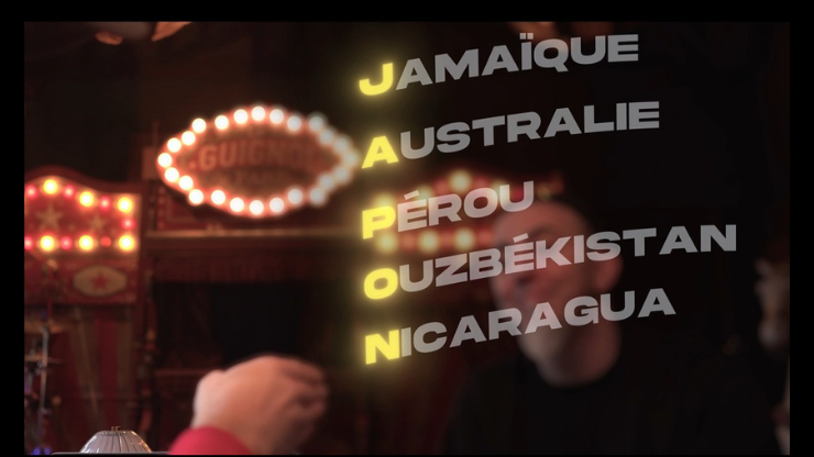 Vous demandez à votre spectateur d’écrire un pays sur un papier, vous vous concentrez et lui annoncez le pays : JAMAIQUE ! Le spectateur répond par la négative, vous lui dites : L’AUSTRALIE, le spectateur fait toujours non de la tête, vous annoncez le PÉROU ! toujours non… Vous lui dites l’OUZBÉKISTAN ! …. non ! Vous annoncez pour finir le NICARAGUA ! Apparemment aucun des pays ne correspond, et pourtant… si on regarde bien :