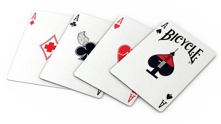 Parce qu’elles sont généralement les cartes les plus fortes du jeu, chaque As a été totalement réinventé, illustré. Admirez le travail remarquable sur l’as de pique devenu seringue, l’as de carreau devenu croix médicale ou encore l’as de trèfle au ton angélique. Enfin, retrouvez de façon aussi logique que symbolique l’onde d’un électrocardiogramme qui bat sur l’as de cœur.