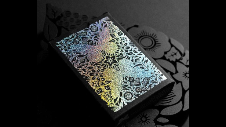 Jeu de cartes Butterfly édition Holo ! Ce jeu Butterfly unique présente un design noirci avec une bordure noire. Le dos et les faces ne comportent aucune couleur. Ils sont recouverts d’une feuille holographique !