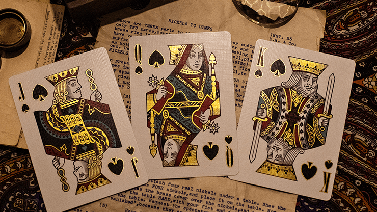 Le jeu comprend 52 cartes à jouer, ainsi que deux superbes Jokers (avec une révélation mystérieuse du Joker dans le miroir), une carte double dos et une carte double face (pour de nombreux effets, y compris le Monte deux cartes).