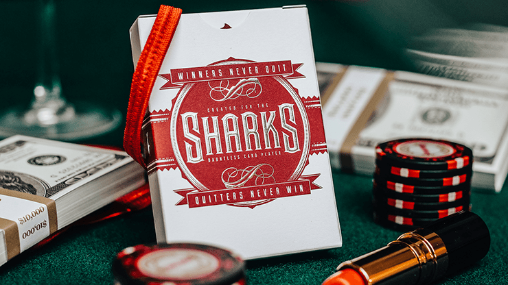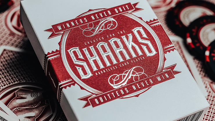 Comme les deux sociétés continuent aujourd’hui à produire plusieurs dizaines de milliers de jeux de cartes qui sont utilisés par certains des noms les plus influents de la magie, le projet SHARKS V1 a été le point de départ de tout cela - avec un tirage initial de seulement 500 unités. Les SHARKS V2 ont été conçues pour les travailleurs de cartes les plus exigeants, à la recherche d’un design élégant et intemporel pour leurs performances. Elles sont produites par l’USPCC sur leur meilleur stock et comportent des détails spéciaux de gaufrage et de dorure à l’argent sur l’étui.
