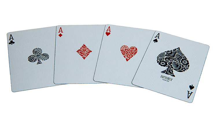 Les voici donc, les nouvelles cartes à jouer Flutterfly. Elles sont imprimées sur la tranche avec une couleur noire profonde grâce à la nouvelle technologie d’impression sur la tranche mise au point par Cartamundi et son entreprise partenaire en France.