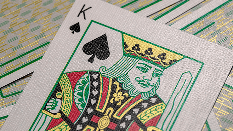 Commandez-les maintenant dans deux magnifiques couleurs : ? » Bourgogne ? » ou ? » Vert émeraude ? ». Ces teintes élégantes sont la toile de fond parfaite pour les reflets dorés saisissants que vous trouverez sur l’étui mat gaufré haut de gamme. Comme l’homme dont ils portent le nom, ces decks sophistiqués sont la quintessence de la classe !