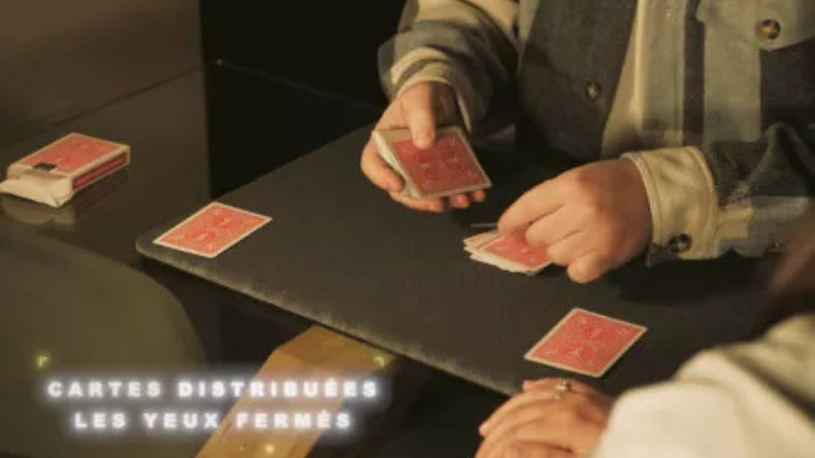 Ensuite, simplement guidé par votre intuition, vous sortez trois cartes du jeu… sans même les regarder. Vous pouvez tourner la tête tout au long de l’expérience,ou même vous bander les yeux.