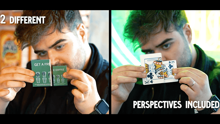 La perspective est un effet pensé pour vos médias sociaux et vos spectacles ZOOM où vous prendrez deux parties d’un Roi de Trèfle et jouerez avec la perspective de celui-ci avec vos spectateurs. Vous devez regarder la bande-annonce pour comprendre à quel point cela semble impossible !