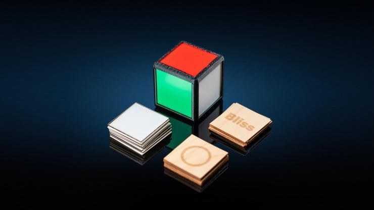 Inside Out est une boîte ou un conteneur vide de 3 centimètres de côté dont les côtés sont configurables. Vous pouvez choisir d’utiliser les faces de couleur fournies, les plaquettes d’émotions gravés sur bois en français, les symboles ESP, ou de personnaliser vos propores plaquettes avec les plaquettes blanches. Vous pouvez utiliser Inside Out pour contenir une prédiction qui est entre les mains des spectateurs tout le temps, ou l’utiliser pour justifier l’exécution d’un Center tear.