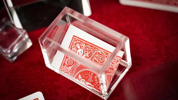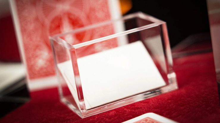 Voici l’un des effets que vous pouvez réaliser : Vous commencez par placer une boîte transparente contenant une carte à jouer pliée sur la table, à la vue du public. Un spectateur choisit une carte, la signe et la perd dans le jeu. Après une série d’effets, la carte disparaît du jeu. Vous prenez alors la boîte, retirez le couvercle et faites basculer la carte pliée sur le bout de votre doigt. Vous dépliez la seule carte en vue, et c’est exactement la carte signée. Vous pouvez montrer vos mains et la boîte est clairement vide, laissant votre public complètement déconcerté.