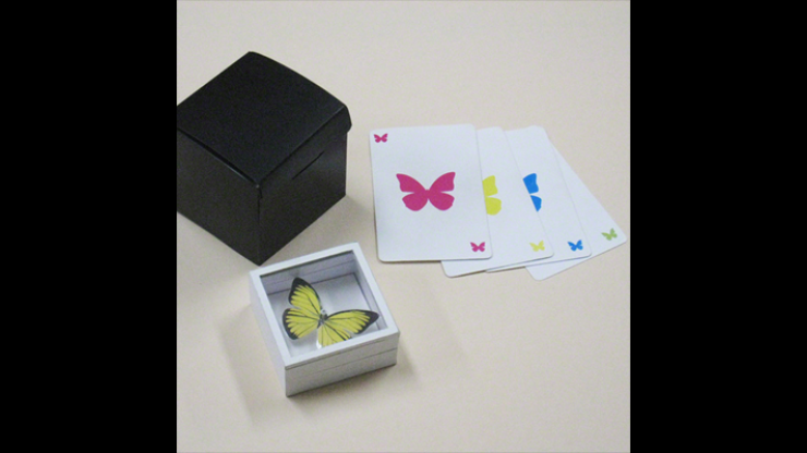 Dans cet effet magique vraiment unique, le magicien produit magiquement un papillon d’une couleur choisie, sur une épingle à l’intérieur d’une boîte qui a été montrée vide auparavant. Chaque élément utilisé dans ce tour contient un astuce intelligente, et la combinaison de ces astuces produit un effet magique extrêmement déroutant, beau et facile à réaliser. La boîte à spécimens peut également être utilisée pour d’autres routines sans thème de papillon. Par exemple, la boîte permet de transformer ou de produire des morceaux de papier, ou des pièces de monnaie contenant un trou central.