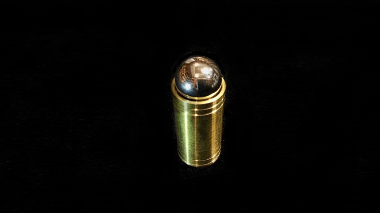 Un socle en laiton massif est présenté avec une boule en acier étincelante. La boule est placée sur le socle et s’enfonce lentement dans la colonne en laiton massif. Tout aussi mystérieusement, elle remonte à la surface. L’opération peut être répétée, la boule s’enfonçant encore plus profondément dans la solide masse de laiton. Enfin, la boule est retirée et tout peut être examiné.